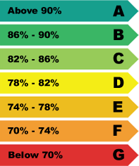 The chart you can see here is the SEDBUK chart for ranking boilers in order of efficiency. The Seasonal Efficiency of Domestic Boilers in the UK rating scheme was developed in conjunction with boiler manufacturers and the government and provides a fair comparison of average boiler efficiency.